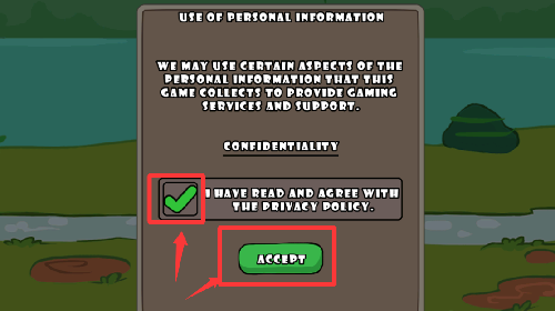 2、進入游戲點擊紅色框框里打√然后接受并進入。