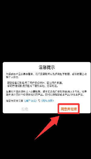 1、點(diǎn)擊溫馨提示里的同意并繼續(xù)。
