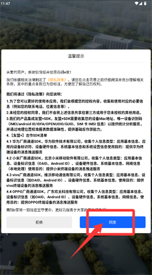 1、啟動應用,仔細瀏覽并同意用戶隱私協(xié)議內(nèi)容即可進入。