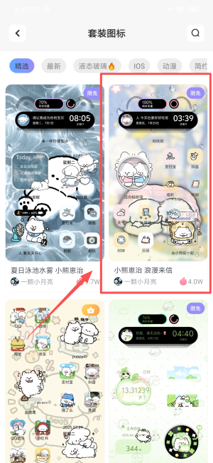 3、登錄后選擇小熊崽治等圖標(biāo)套裝使用。