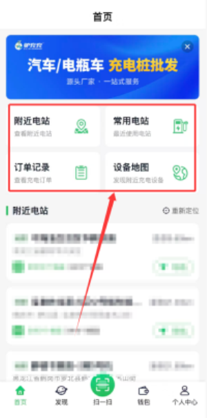 2、首頁提供周邊充電站定位、收藏站點及設(shè)備分布地圖等查詢功能。