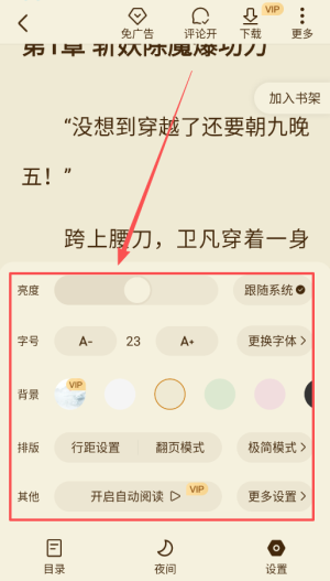 4、閱讀設(shè)置選項(xiàng)允許用戶自由調(diào)整界面背景和字體樣式,打造最符合個(gè)人喜好的閱讀環(huán)境,讓您暢享無阻閱讀樂趣。