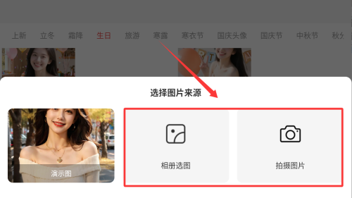 4、可以選擇相冊(cè)選圖還有直接拍照使用。